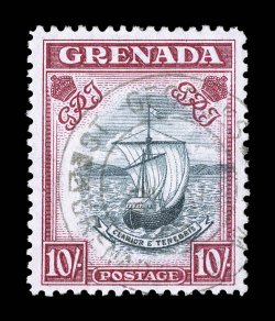 forged postmarks of Madame Joseph, fine-very fine interestingly, they uS.G. #163, 1938 10/- Steel blue and carmine, perf. 12x13, Madame Joseph forged cancels, group of eight (including one "tied" to piece), all with St. George or Grenada G.P.O. forged postmarks of Madame Joseph, fine-very fine; interestingly, they used the rare 10/- variety (catalogs £650 mint and £1,600 used) to make these collectable forgeries. (imagea) (Image) Est. $300-400