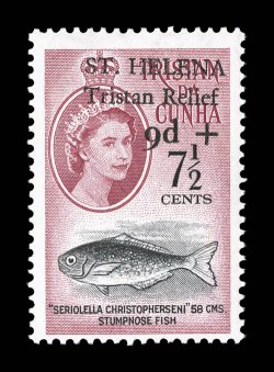 hinged, extremely fine (S.G. 171 var.)#B1 var., 1961 2 1/2c + 3p Tristan Relief semi-postal, broken "A" in "Helena" variety, exceptionally well centered single of this distinctive and scarce variety, o.g., lightly hinged, extremely fine (S.G. #171 var.) (Image) S.G. £1,200+