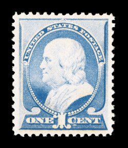 overall brilliance and crispness, strong rich color and impression on i#212, 1c Ultramarine, a magnificent quality mint example, being in a condition that would please even the most demanding condition conscious collector, possessing a marvelous overall brilliance and crispness, strong rich color and impression on immaculate paper, flawlessly centered within unusually large margins, unblemished o.g., never hinged, extremely fine; a superb gem in every regard, without question, the finest never hinged #212 we have ever offered; 1999 PF and 2009 PSE certificates (the latter graded Superb 98; SMQ $9,650.00). (Image) $375.00