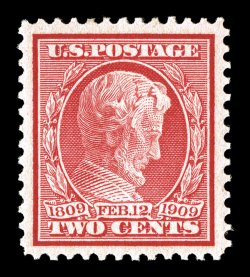 on well blued paper, pristine o.g., n.h., extremely fine a large-marg#369, 2c Lincoln on bluish paper, extraordinarily well centered amid impressively wide margins not often encountered on this stamp, deep luxuriant color and a crisp impression on well blued paper, pristine o.g., n.h., extremely fine; a large-margined gem; 1998 PF and 2009 PSE certificates (the latter graded XF-Superb 95; SMQ $1,650.00). (Image) $425.00