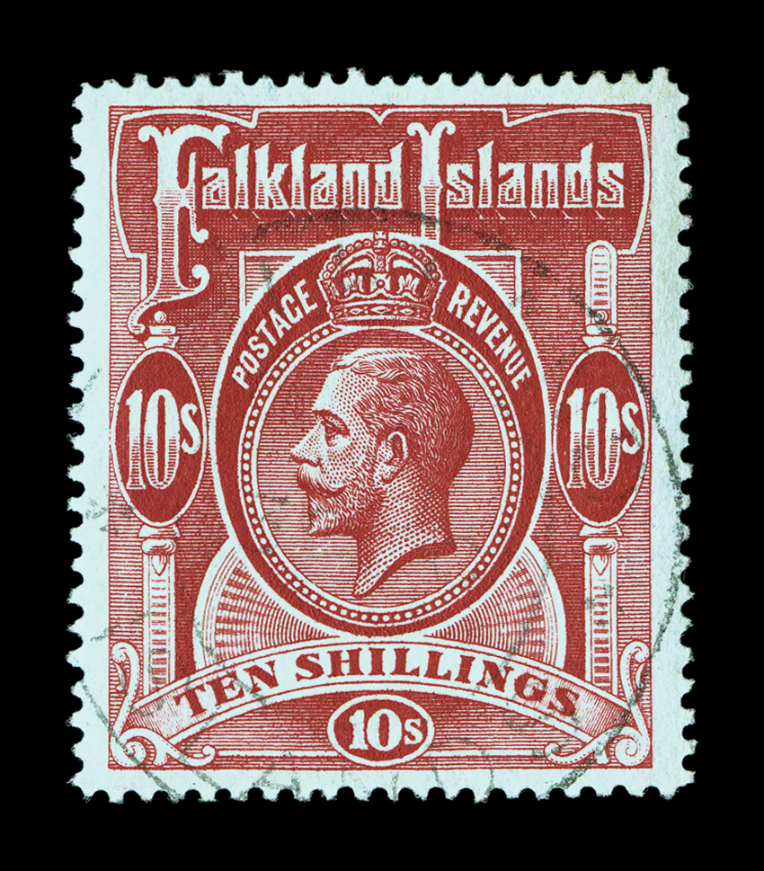 470 p 75 75, 1933 10- Tercentenary, tied to piece by full strike of Port Stanley c.d.s., strong rich color on fresh paper, very fine (S.G. 137 £1,000).#75, 1933 10/- Tercentenary, tied to piece by full strike of Port Stanley c.d.s., strong rich color on fresh paper, very fine (S.G. #137; £1,000). (Image) $1,100.00