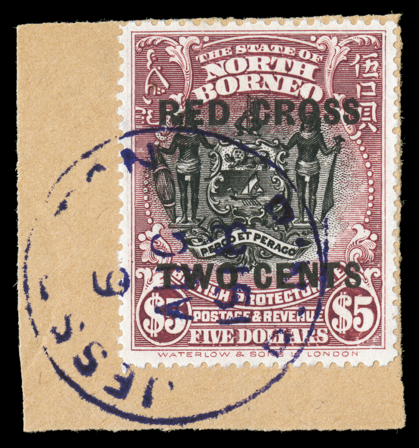 cancels, fine-very fine and quite elusive used (S.G. 235-52 £1,000).#B31-47, 1918 1c+4c to $10.00+4c Red Cross overprints cplt., strong rich colors, $10.00 tied to piece, all with c.d.s. cancels, 5c and $1.00 with additional faint blue crayon cancels, fine-very fine and quite elusive used (S.G. #235-52; £1,000). (imagea) (Image) $1,073.00