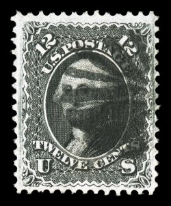 oval grid cancel, an extremely fine gem.There are only thirteen reco#107, 12c Black re-issue, perfectly centered within lavishly large margins all around, stunning color that is remarkably deep and intense, prooflike impression on fresh paper, oval grid cancel, an extremely fine gem.There are only thirteen recorded used copies of the Twelve Cent 1861 Re-issue, of which only five are sound. The Collier example is, without question, the finest of those five sound copies. In fact, it is one of the finest quality used examples of any 1861 Re-issue. This stamp was recently submitted to the Professional Stamps Experts for grading, where it received by far the highest grade for a used #107, and is accompanied by a note from master grader William Litle, which says "perhaps 98 if not for the cancel". We feel this cancel is no more heavy or objectionable than what is typically found on re-issues, plus it helps to confirm the stamp's contemporaneous usage.A stamp for the collector who demands only the very finest quality available. Accompanied by a 2009 PSE certificate (XF-Superb 95; SMQ $40,100.00); this is the highest grade ever given to a used #107 (the next highest being a mere 80), and is the only example to be given the grade of XF-Superb 95; ex-Sheriff, Zoellner. (Image) $9,500.00