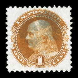 tiny fraction of the 672 were ever used, and of those, only a handfu#105, 5c Brown re-issue, well centered within large margins, rich re-issue color and a crisp impression, light duplex cancel, very fine; an extraordinarily rare stamp, as only a tiny fraction of the 672 were ever used, and of those, only a handful exist in this sound premium condition; 1991 PF certificate. (Image) $6,000.00