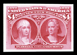 323 P 230P4-45P4 230P4-45P4, 1c-$5.00 Columbians, plate proofs on card cplt., all with four large margins, brilliantly fresh colors, choice very fine set.#230P4-45P4, 1c-$5.00 Columbians, plate proofs on card cplt., all with four large margins, brilliantly fresh colors, choice very fine set. (imagea) (Image) $1,435.00