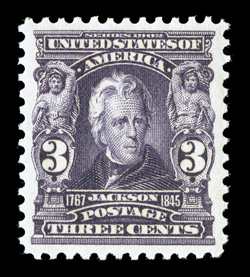 on especially bright paper, immaculate o.g., n.h., an extremely fine#302, 3c Bright violet, flawless mint single, possessing mathematically precise centering within extra-large margins, incredibly fresh, with deep luxuriant color and impression on especially bright paper, immaculate o.g., n.h., an extremely fine gem; a stamp for the most condition conscious collector; 1990 PF certificate. (Image) $140.00