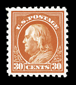 certificates.#439, 30c Orange red, very well centered within large margins, deep vibrant color and a well incised impression, pristine o.g., never hinged, extremely fine; 1987 and 2001 PF certificates. (Image) $600.00