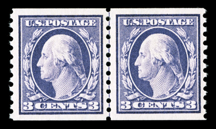 and clean, very fine 1992 PF certificate.#456, 3c Violet rotary coil, Ty. I, perf. 10 vert., joint line pair, well centered and with bright color, certificate states "disturbed o.g." but the gum is actually quite fresh and clean, very fine; 1992 PF certificate. (Image) $1,250.00