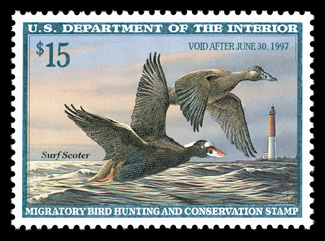 $255.00) the highest grade the PSE has given this stamp.#RW63, 1996 $15.00 Multicolored, mathematically precise centering within large margins, marvelously bright and fresh, o.g., n.h., superb; 2008 PSE certificate (Gem 100; SMQ $255.00); the highest grade the PSE has given this stamp. (Image) $30.00