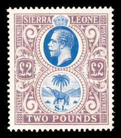 (Scott 138 $550.00).S.G. #147, 1923 £2 Blue and dull purple, uncharacteristically well centered, rich bright colors, fresh clean o.g., lightly hinged, extremely fine; an especially desirable stamp (Scott #138; $550.00). (Image) £600
