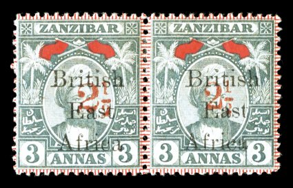 $1,450.00).S.G. #39b, 1895 4½a Brown purple, with "British East Africa" overprint, unused, rich color, fine; a very scarce shade variety; 1997 Brandon certificate (Scott #44a; $1,450.00). (Image) £1,200