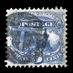 certificate.#119, 15c Brown and blue, Ty. II, used, deeply rich colors and strong impressions, well centered, blue grid cancel which is most uncommon on this value, choice very fine; 2009 PF certificate. (Image) $335.00