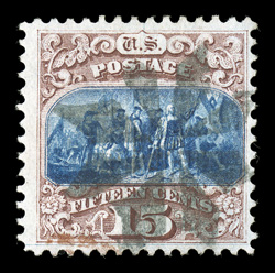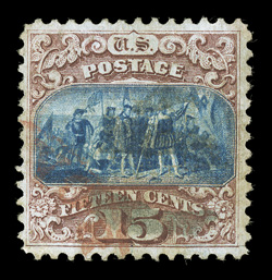 certificate (F-VF 75).#119, 15c Brown and blue, Ty. II, used, beautiful colors that are especially deep and rich, light N.Y. Steamship postmark, very fine; 2000 PF certificate and a 2006 PSE certificate (F-VF 75). (Image) $350.00