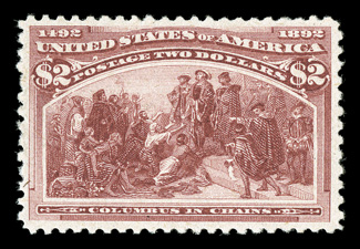 484 og 242 242, $2.00 Columbian, well centered and margined, rich bright color, o.g., lightly hinged, choice very fine 2000 PF and 2005 PSE certificates.#242, $2.00 Columbian, well centered and margined, rich bright color, o.g., lightly hinged, choice very fine; 2000 PF and 2005 PSE certificates. (Image) $1,150.00