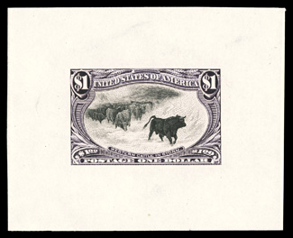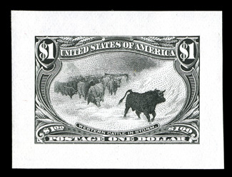 immaculate white paper, well centered within lavishly large margins, flawless#292, $1.00 Trans-Mississippi, an extraordinarily fresh and choice mint example of this popular commemorative, with outstanding color and a deeply etched impression on immaculate white paper, well centered within lavishly large margins, flawless o.g., never hinged, choice very fine; 1990 and 2010 PF certificates. (Image) $3,400.00