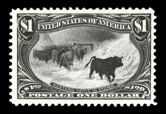 certificate (XF 90).#292, $1.00 Trans-Mississippi, premium used example, exceptionally well centered and margined, strong color, duplex cancel, extremely fine; 2001 PSE certificate and a 2008 PF certificate (XF 90). (Image) $650.00