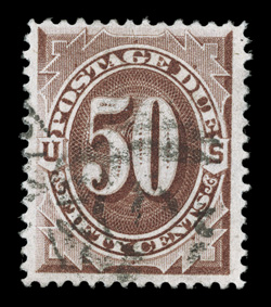 certificate.#J21, 50c Red brown, rich fresh color, attractively centered, o.g., lightly hinged, a very fine example of this scarce high value postage due; 1998 PF certificate. (Image) $1,900.00