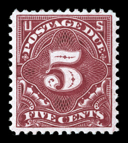 98 OGph $85.00) this is the only stamp in the series higher than#J65, 10c Carmine rose, perfectly centered within uncharacteristically large margins, bright fresh color, o.g., lightly hinged, extremely fine gem; 2009 PSE certificate (Superb 98 OGph; $85.00); this is the only stamp in the series higher than the 2c value to achieve Superb 98 status. (Image) $25.00