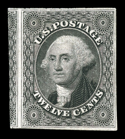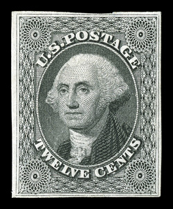 certificate.#17, 12c Black, scarce unused single, four ample to large margins, strong color and impression, tiny corner crease, otherwise very fine; clear 1977 PF certificate and a 2006 PF certificate. (Image) $2,200.00