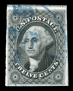 certificate.#17, 12c Black, attractive used single, with four large margins, wonderfully rich color and an excellent clarity of impression, light red grid cancel, extremely fine; 1999 PF certificate. (Image) $330.00