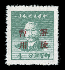 scarce.#7L6-18, 1949 Liberation of Swatow overprints cplt., without gum as issued, generally fresh and well centered, $10 with light toning at bottom, otherwise fine-very fine and scarce. (imagea) (Image) $1,120.00