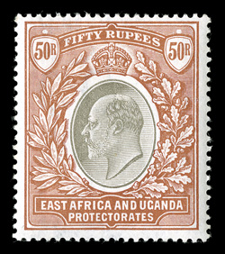 1313 og 30A 30A, 1904 50R Orange brown and black, lovely rich colors, fresh clean o.g., lightly hinged, a very fine example of this elusive high value (S.G. 33 £1,800).#30A, 1904 50R Orange brown and black, lovely rich colors, fresh clean o.g., lightly hinged, a very fine example of this elusive high value (S.G. #33; £1,800). (Image) $2,100.00