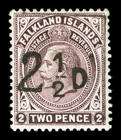 certificate (S.G. 115 £1,000).#52, 1928 "2½D" Provisional surcharge, excellent color that is especially deep and intense, o.g., lightly hinged, a very fine example of this scarce provisional; 1979 Brandon certificate (S.G. #115; £1,000). (Image) $1,200.00