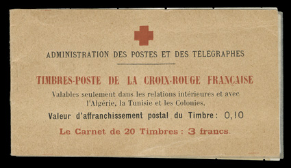 Yvert #147-C1, 1914 10c + 5c Red Cross, booklet pane of ten, complete booklet of two panes, remarkable fresh and intact, nicely centered, o.g., n.h., very fine and choice (Scott #B2a; $1,600.00 as