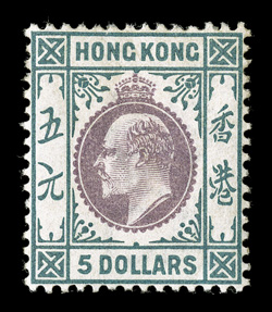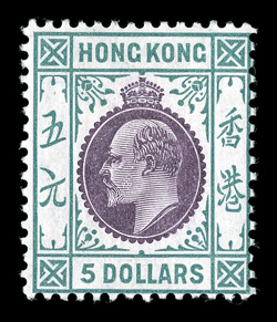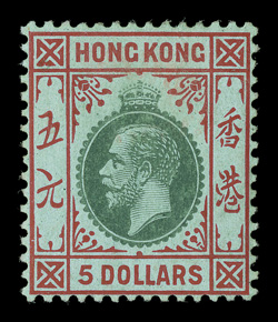1354 og 123a 123a, 1912 $5.00 Red and green on blue green, olive back, watermarked multiple Crown and CA, o.g., very fine and scarce (S.G. 115b £1,100).#123a, 1912 $5.00 Red and green on blue green, olive back, watermarked multiple Crown and "CA", o.g., very fine and scarce (S.G. #115b; £1,100). (Image) $1,300.00