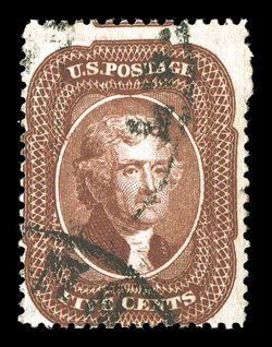 fine.#30A, 5c Brown, Ty. II, used single that is well centered within wide margins for this difficult value, rich deep color, neat large Boston "Paid" cancel, very fine. (Image) $300.00