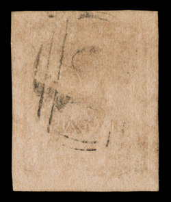 certificates, as well as a 2009 RPS certificate (S.G. 3 £1,100).#7, 1858 1p Embossed on buff, full margins around, clear embossing, lightly cancelled, current certificate notes "thinned", very fine appearance; clear 1987 PF and 1996 Brandon certificates, as well as a 2009 RPS certificate (S.G. #3; £1,100). (Image) $1,275.00