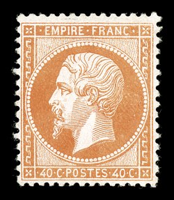 clean original gum that has only been very lightly hinged, very fine.<#20a, 1860 80c Rose on pinkish, Ty. I, tete-beche, a sensational mint "back to back" horizontal tete-beche pair, incredibly fresh and bright, four ample to large margins, full clean original gum that has only been very lightly hinged, very fine.An important classic France tete-beche rarity. The 80c Napoleon imperforate inverted cliche only comes from position 150 on the right pane. Only three tete-beche examples are recorded, this exceptional pair and one other, and one pair in a block of four.Illustrated on the 2000 Yvert Specialized catalog. Signed Bernard and Pascal Behr, J.F. Brun and Goebel, in addition to being accompanied by their 2003 certificates; ex-Ferrary, Burrus and "Lafayette" (Yvert#17Bc; €65,000). (Image) $57,500.00