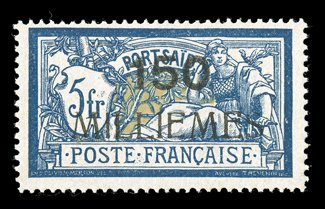 68 og 51 var. - 55 var. 51 var.-55 var., 1921 15m on 40c to 150m on 5Fr Surcharges, with 1 for I in MILLIEMES cplt., singles of each except 15m on 50c is a bottom sheet-margin horizontal pair with