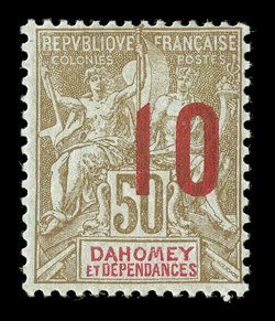 73 og 19 19, 1892 75 Black surcharge on 15c Blue, an attractive mint example of this key stamp of Benin, nicely centered, good color, o.g., very fine for this an extremely rare stamp as