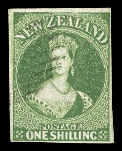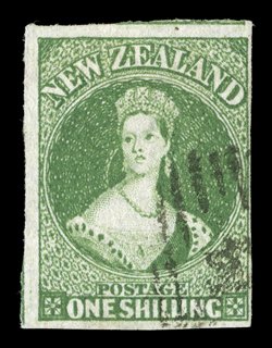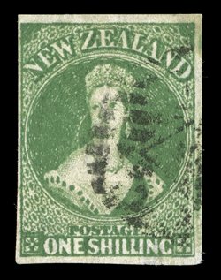 2185 O   1- deep green, Row 15 with re-entry, neatly cancelled with two part obliterators, good to large margins fine and unusual. Sc. 15d S.G. 46.1/- deep green, Row 1/5 with re-entry, neatly cancelled with two part obliterators, good to large margins; fine and unusual. Sc. 15d; S.G. 46. (Image) Est. $200-300