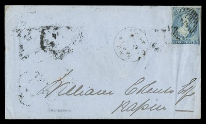 2188 c   1863 (4 Dec.) envelope from the Laver correspondence from Auckland to Sydney, bearing 6d. red-brown with good to very large margins and tied by small part numeral obliterator