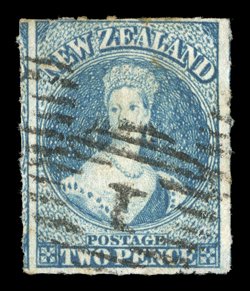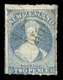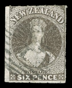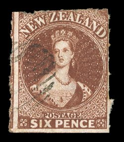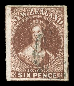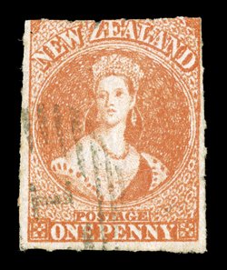 roulettes nearly all round, neatly cancelled "1" at Auckland; fine. Holcombe Opinion (1995). Sc. 14c group; S.G. 53, £475. (Image) |