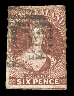 at Auckland; fine and an attractive example of this scarce shade. R.P.S. Certificate (1939). Sc. 12b; S.G. 51, £600. provenance: "Chalon", November 1968