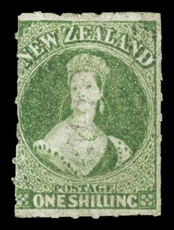 106, £500. provenance: Dale-Lichtenstein, May 19901/- green, a bright "yellow-green" shade neatly cancelled at left with part "OTAGO" in bars leaving right side of portrait clear; attractive. B.P.A. Certificate (1990). Sc. 30C; S.G. 106, £500. provenance: Dale-Lichtenstein, May 1990 (Image) Est. $200-300
