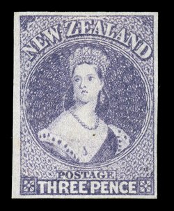 2444 O   3d. lilac with good to very large margins, neatly cancelled with thick 1 in oval of bars at Auckland fine. Sc. 33b var. S.G. 117a var.3d. lilac with good to very large margins, neatly cancelled with thick "1" in oval of bars at Auckland; fine. Sc. 33b var.; S.G. 117a var. (Image) Est. $200-300