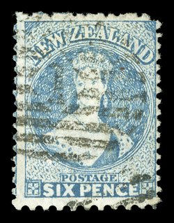 2457 O   6d. blue, with light indistinct bars cancellations weak lower left corner perf., otherwise a pleasing example of this scarce stamp. Sc. 44 S.G. 131a, £550.6d. blue, with light indistinct bars cancellations; weak lower left corner perf., otherwise a pleasing example of this scarce stamp. Sc. 44; S.G. 131a, £550. (Image) Est. $200-300