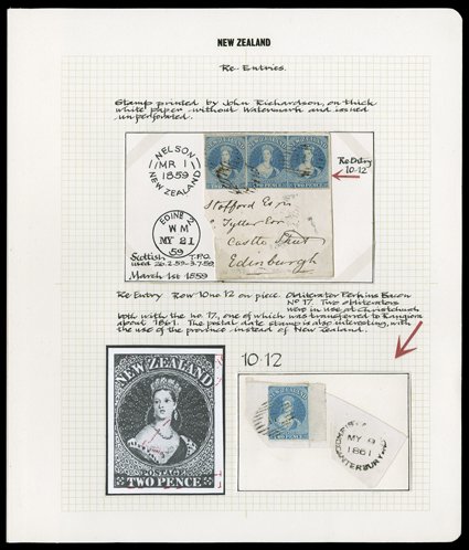 Wellington, the second with traces of margins in places and crisply cancelled "18" at Otago; an unusual pair. provenance: Gerald Ellott (imagea)