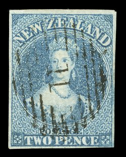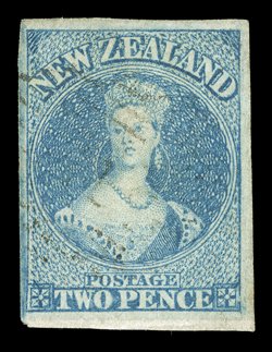 stamp. B.P.A. Certificate (1987). Sc. 8a S.G. 19, £3,500.2d. blue, roulettes on the vertical sides, imperforate at top and at foot, neatly cancelled "15" at Nelson; tiny fault at right caused through separation, otherwise sound. A rare stamp. B.P.A. Certificate (1987). Sc. 8a; S.G. 19, £3,500. (Image) Est. $1,000-1,500