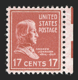 484 nhu 822 822, 17c Rose red, superb right sheet-margin single, absolutely perfect centering within wide margins, deep vibrant color, o.g., n.h., extremely fine gem one of the most