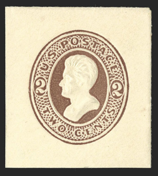 the lower one being inverted, additionally the card shows two fairly st#UX10a, 1c Black on buff postal card, Double Impression, One Inverted, choice mint example of this striking and rare error card, fresh and bright with two strong impressions, the lower one being inverted, additionally the card shows two fairly strong offset impressions on the reverse (one also being inverted to the other), just the faintest trace of a bend at bottom right, very fine (USPCC #S10a). (Image) $4,000.00