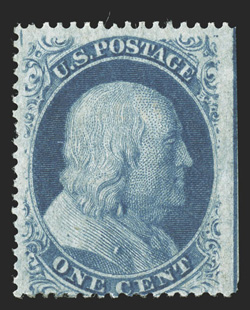 listed in Scott for 19), fine 1987 PF certificate.#19, 1c Blue, Ty. Ia, fresh used example of this rare stamp, rich luxuriant color and a sharp detailed impression on bright white paper, light blue grid cancel (this color is not listed in Scott for #19), fine; 1987 PF certificate. (Image) $11,500.00