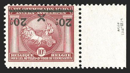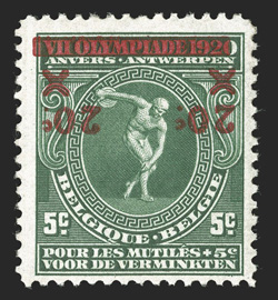 signed.#B48-50 var., 1920 5c+5c to 15c+15c Olympic games imperforate cplt., singles including 5c and 15c with sheet-margin at left, o.g., extremely fine, each signed. (Image) Est. $150-200