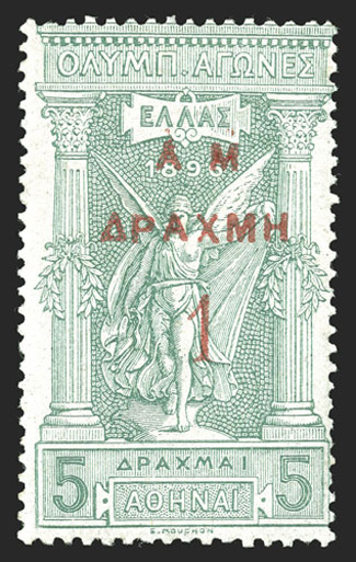 1392 og 164 164, 1900 Black 50l surcharge on Red 25l surcharge on 40l Olympic games, o.g., light h.r., fresh and very fine.#164, 1900 Black 50l surcharge on Red 25l surcharge on 40l Olympic games, o.g., light h.r., fresh and very fine. (Image) $500.00