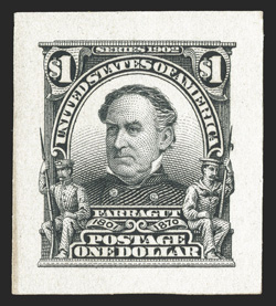 example of this attractive value that is rarely found so nice and#311P2a, $1.00 Black, "Panama-Pacific" small die proof on yellowish wove, remarkably fresh for this normally toned proof, strong rich color, extremely fine; an exceptionally choice example of this attractive value that is rarely found so nice and of which only a few examples were issued; 2004 PF certificate. (Image) $2,500.00
