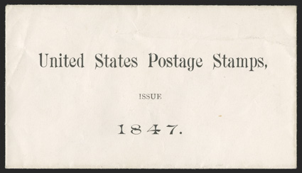 appearance a very rare essay of the 1847 Issue.#2-E3, 10c Black, frame only die essay on India, 41x55mm, fresh color, a few minor India paper translucent stains, small surface nick in the right frame line, very fine appearance; a very rare essay of the 1847 Issue. (Image) $2,500.00